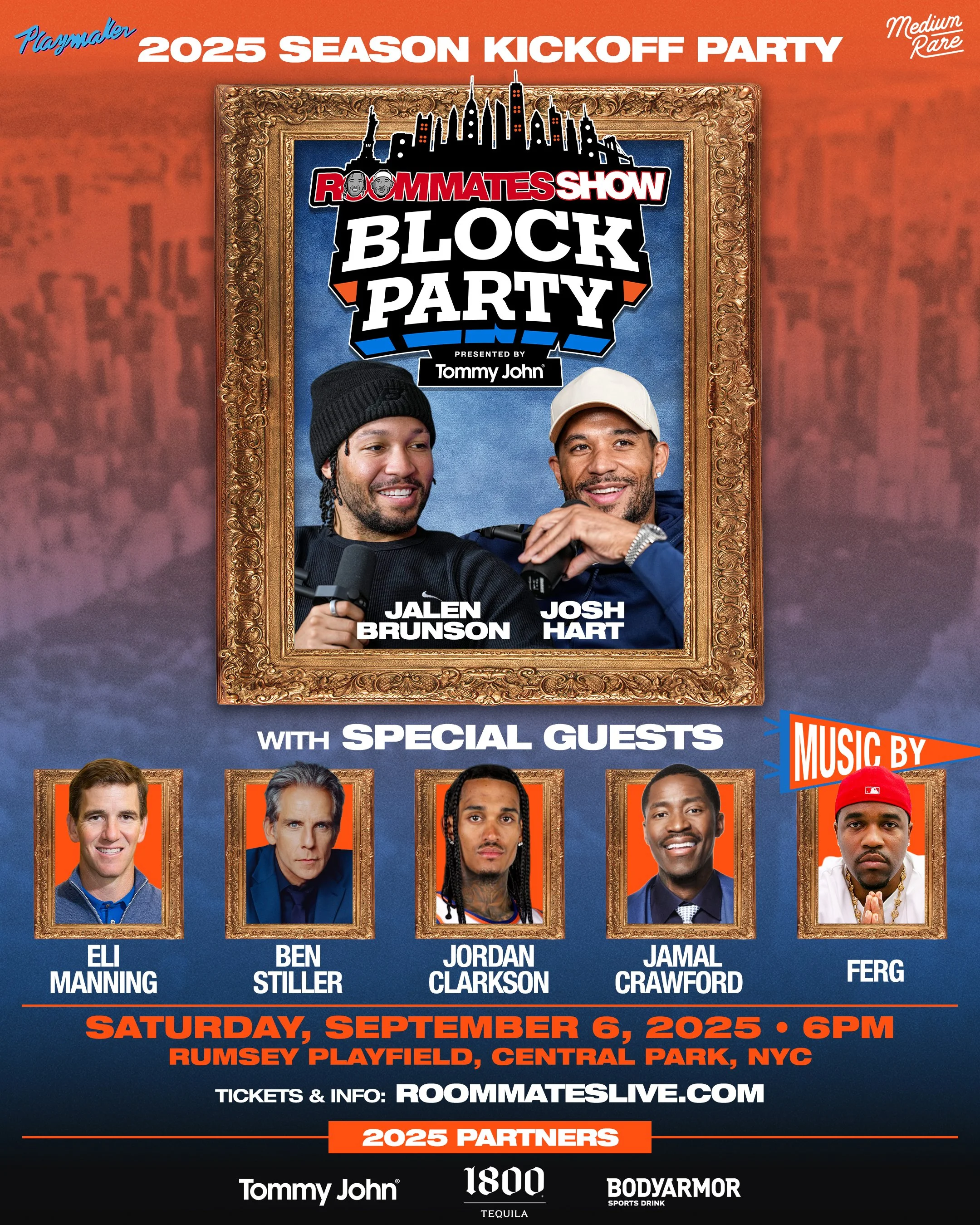 In 2025, the viral live podcast returned to Central Park, uniting 5,000 Knicks fans for another can’t-miss experience. The show once again delivered a powerhouse lineup, highlighted by appearances from Eli Manning, Ben Stiller, Jordan Clarkson, and Jamal Crawford, capped off with a high-energy live performance by FERG.